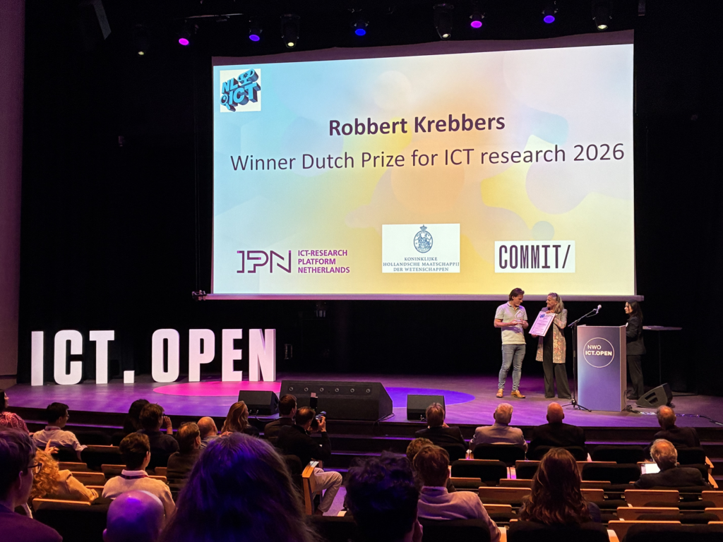 On 16 April is during the NWO ICT.OPEN 2026 conference in De Doelen Rotterdam the Dutch Prize for ICT research 2026 awarded to Dr. Robbert Krebbers, senior researcher at Radboud University Nijmegen. Prof. Dimka Karastoyanova, Board Member of the ICT-research platform Netherlands (IPN) and Drs. Linda Hovius, Chair of The Royal Dutch Science Association (KHMW), presented the prestigious prize.