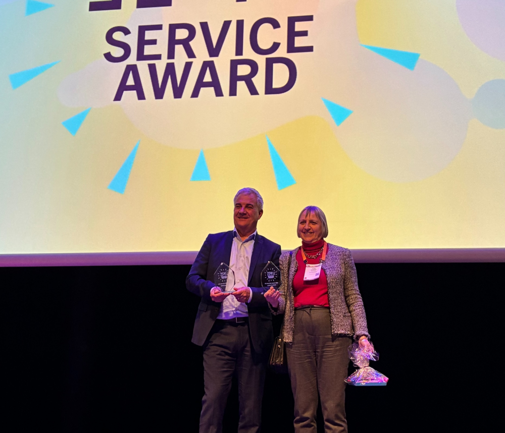 During the plenary opening of ICT.OPEN on April 15, 2026, both Inald Lagendijk and Lynda Hardman received the IPN Service Award 2026. The Award recognizes a person who has provided outstanding service to the IPN community.